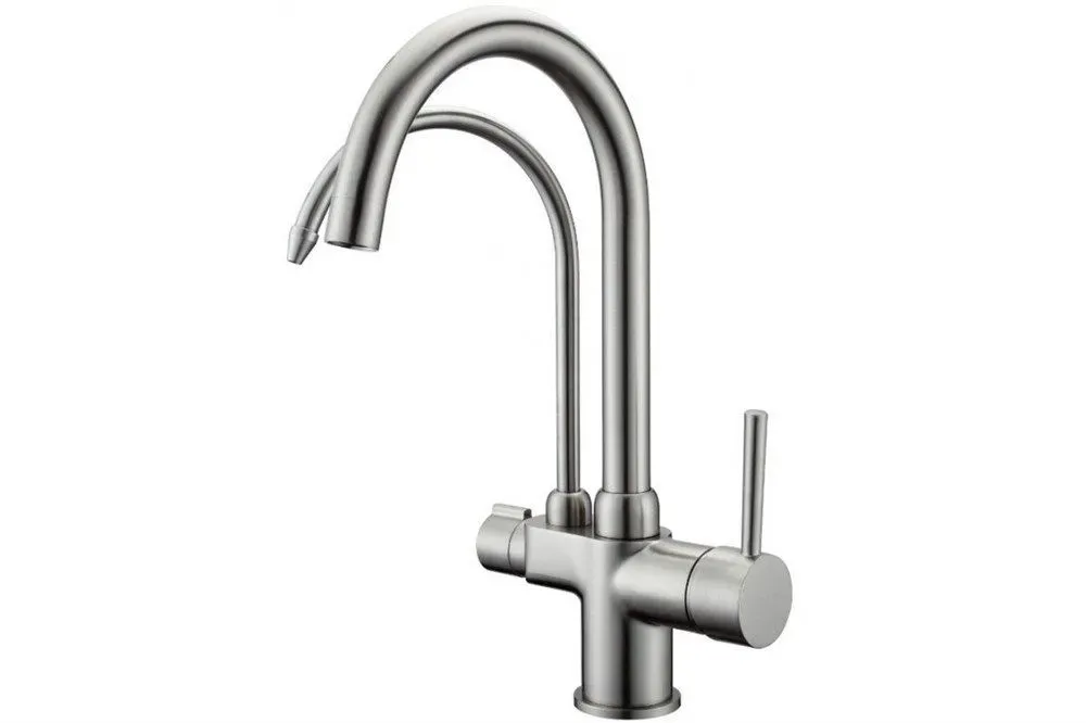 Cмеситель для кухонной мойки Gappo G4398-10 с подключением фильтра питьевой воды - однорычажный смеситель из латуни с покрытием "сатин", с отдельным изливом и краном для фильтрованным воды. Смеситель подключается к системе очистки воды.