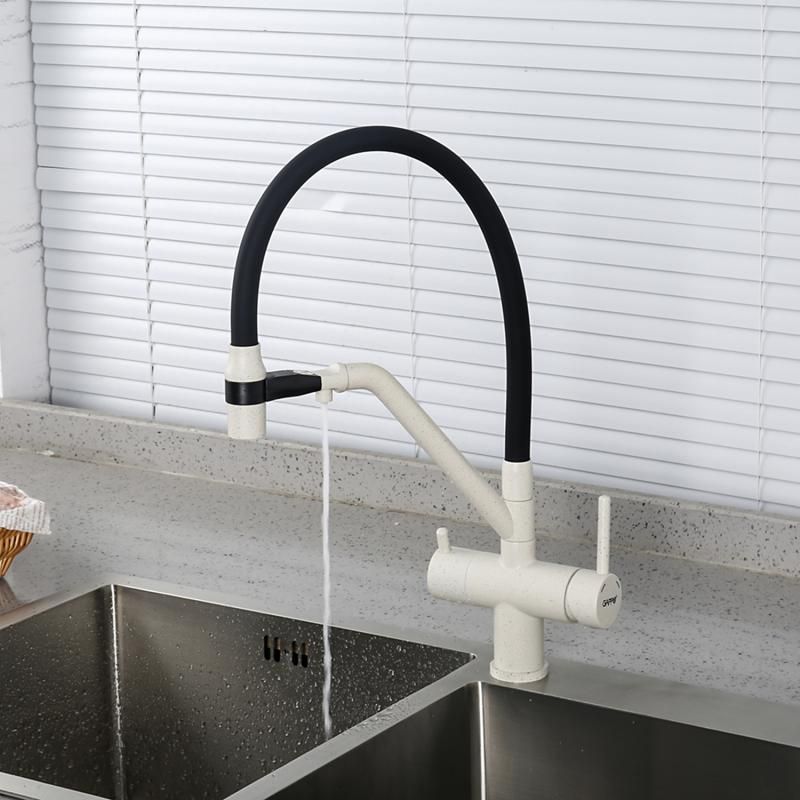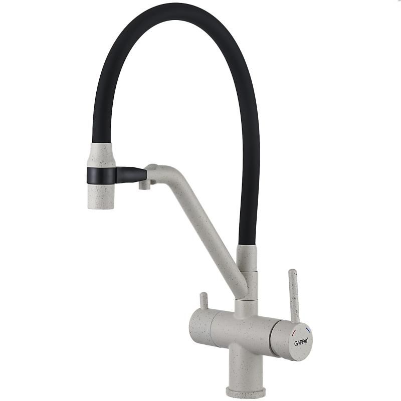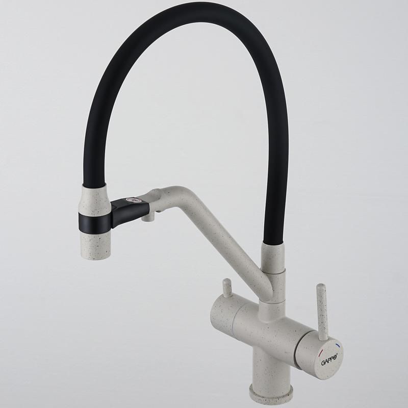Смесители для кухни Gappo G4398-81 под фильтр с гибким изливом белый/чёрный