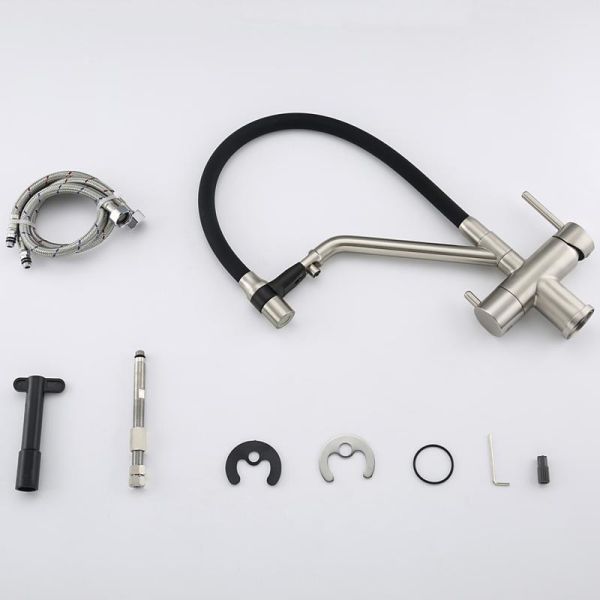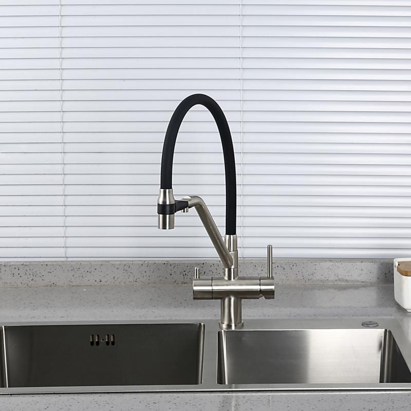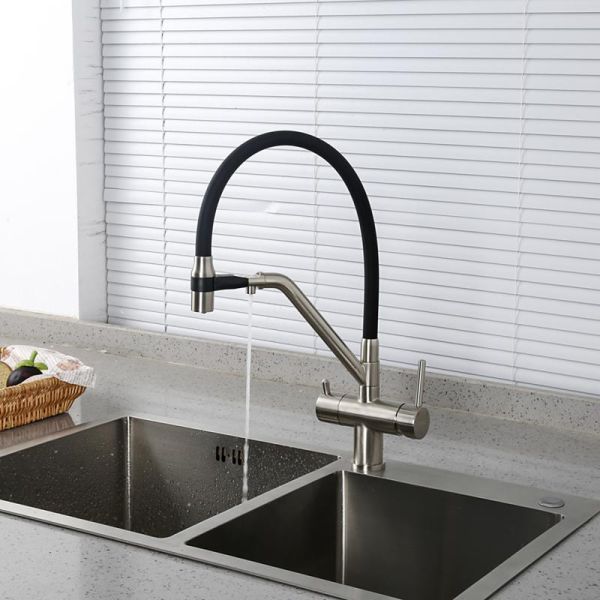 Смесители для кухни Gappo G4398-85 под фильтр с гибким изливом сатин/чёрный