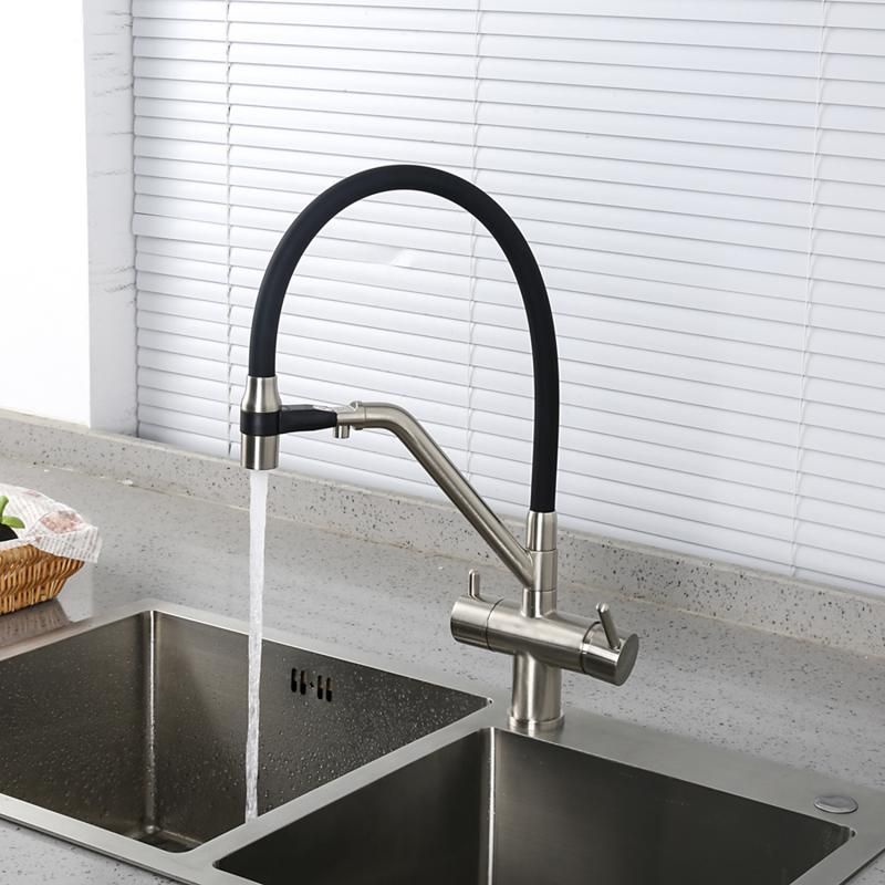 Смесители для кухни Gappo G4398-85 под фильтр с гибким изливом сатин/чёрный купить