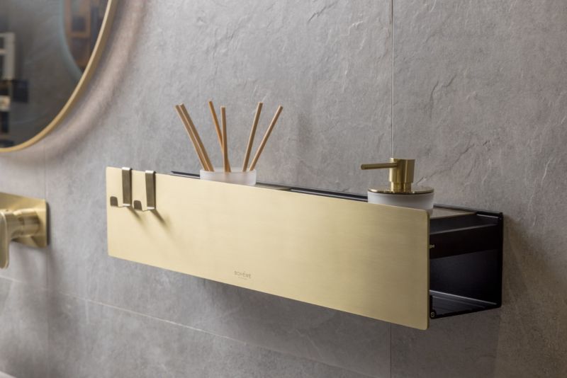 Полка Boheme Space идеально подходит для использования как в мокрых, так и в сухих зонах. Открывающаяся передняя часть комфортна для ухода.