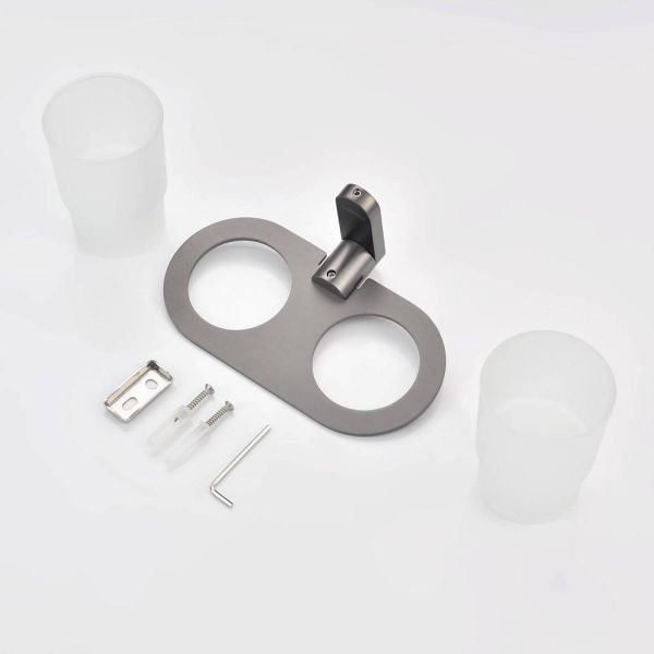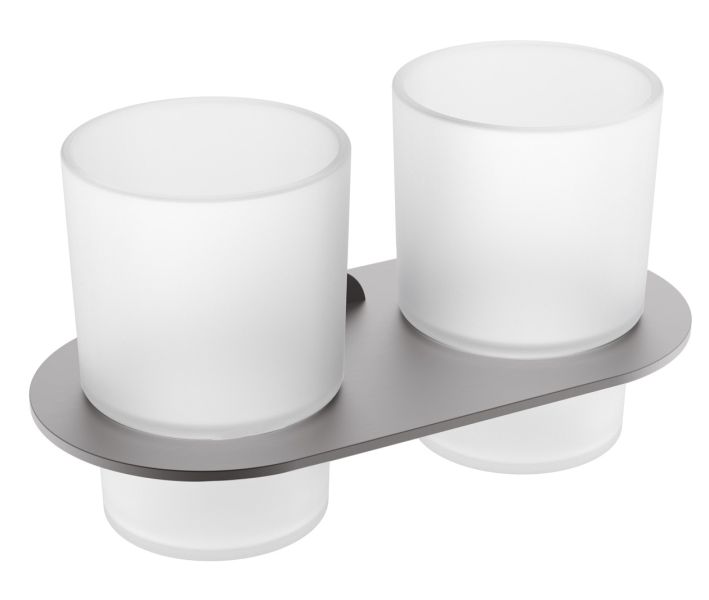 Raglo R300.08.09 Два стеклянных стакана с держателем. Форма округлая, цвет - графит, полуматовое покрытие. Крепление в комплекте.