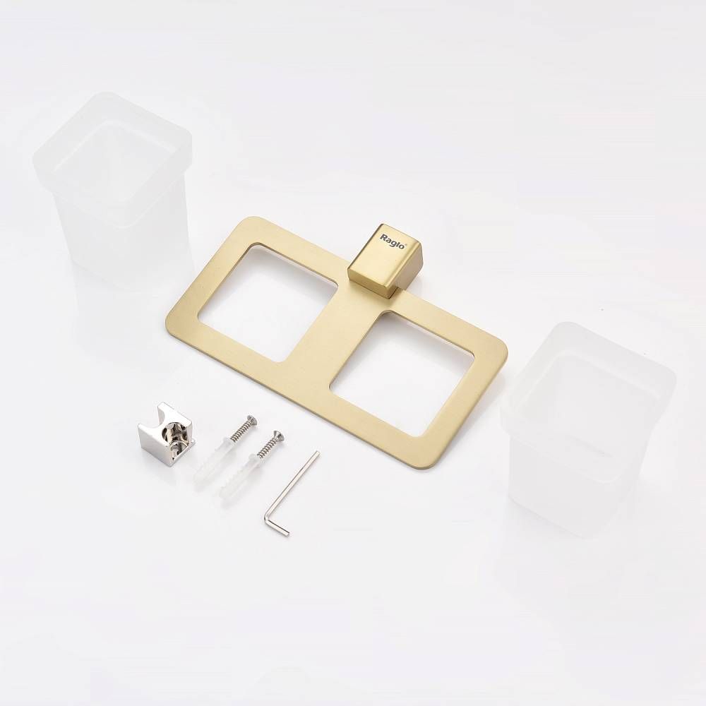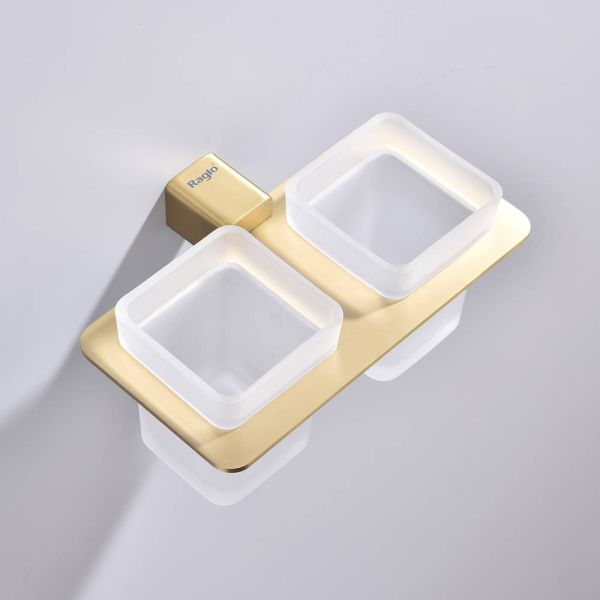 Стакан для ванной комнаты Raglo R301.08.03 двойной золотой сатин купить