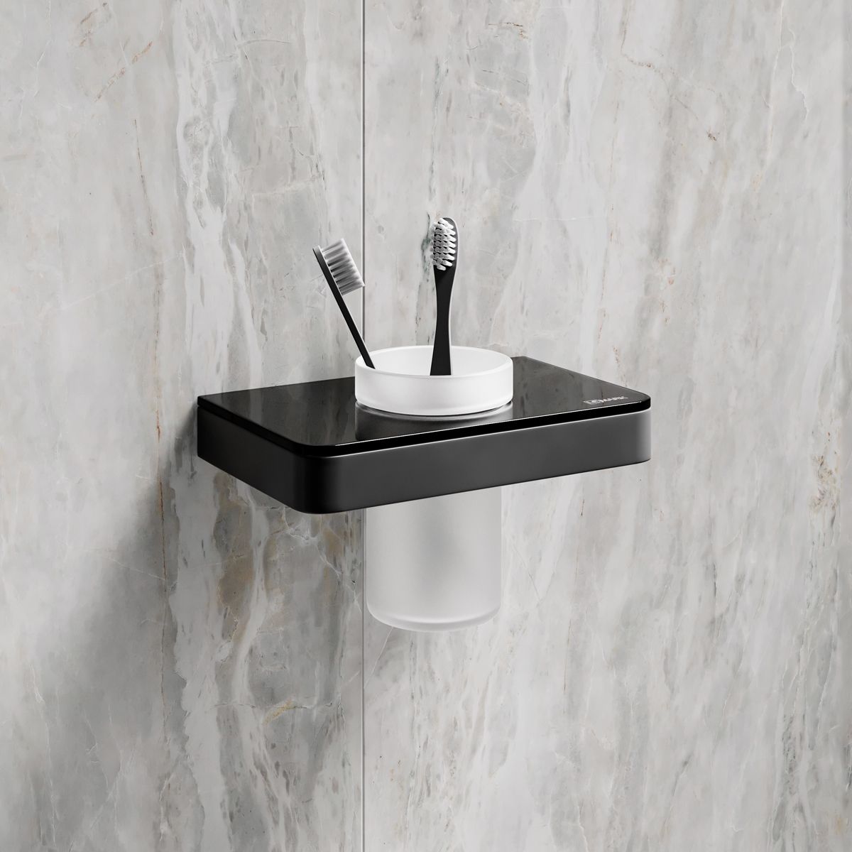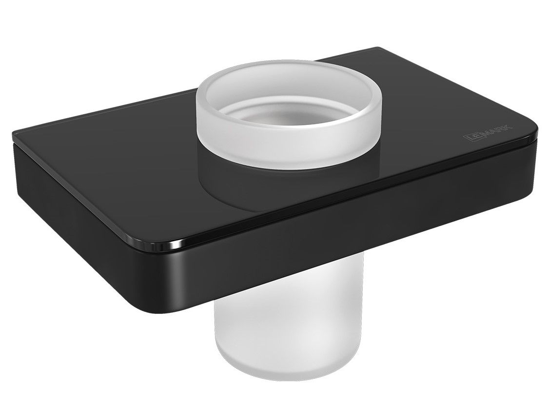 Стакан для зубных щёток Lemark Glass Line 9732036 с держателем чёрный матовый/чёрное стекло купить