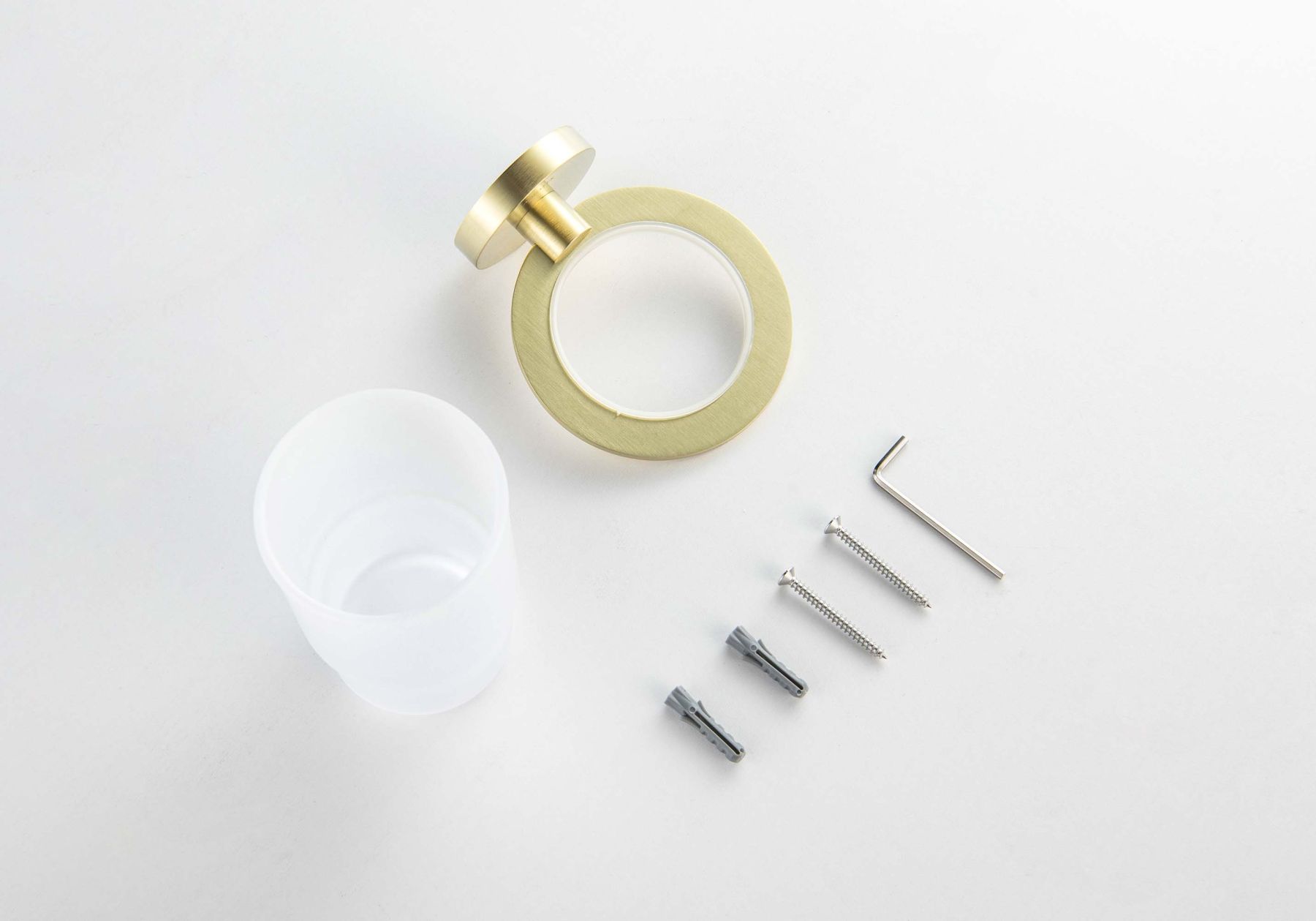 Общий размер (мм): 90*107*95ммОбъем (л.): 0.2Основной материал: латунь / нержавеющая сталь / стекло белое матовоеМетод крепления: шурупыМонтаж: на стену, подвеснойНазначение: аксессуарыТип продукта: стакан для ваннойГарантия (лет): 5Для зубных щеток и принадлежностей