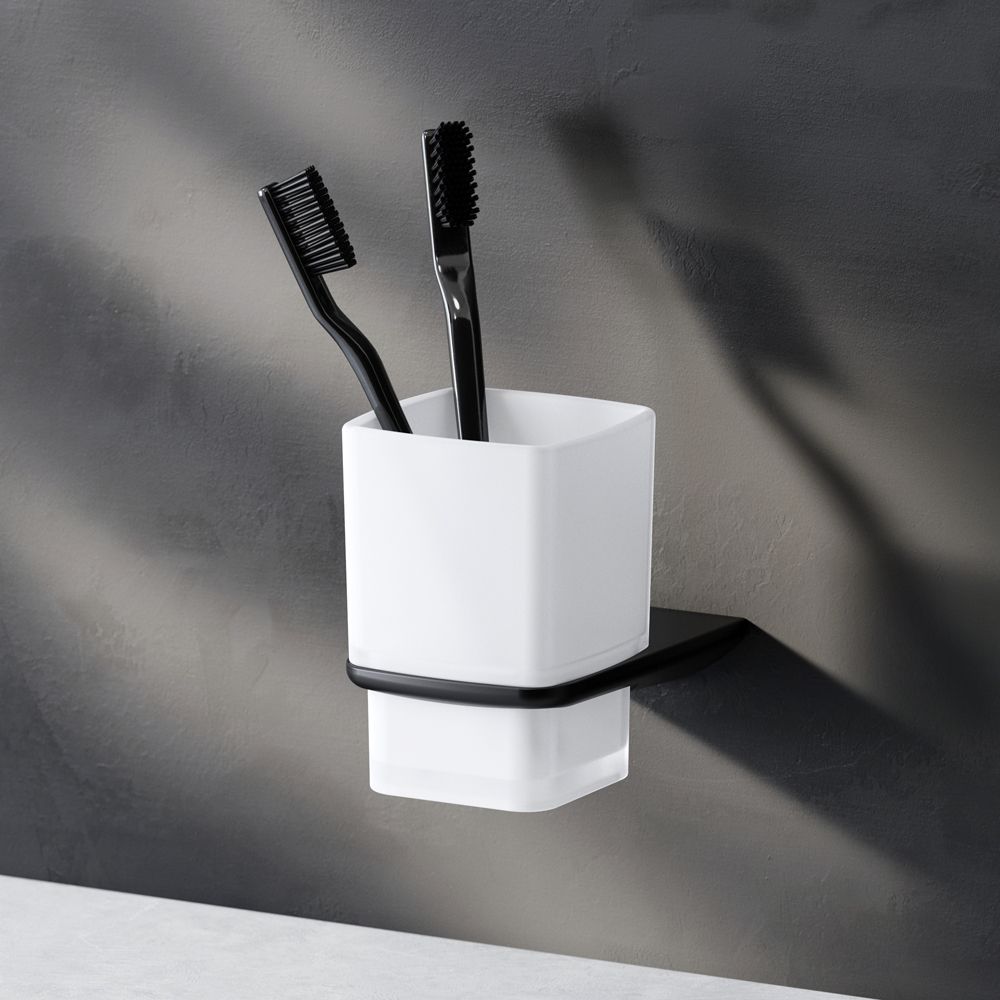 Стеклянный стакан с настенным держателем Am.Pm Inspire 2.0 чёрный матовый A50A34322