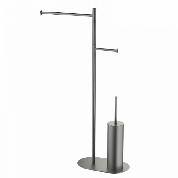 "Черное золото" неизменно эффектный и привлекающий внимание цвет.Напольная стойка Timo Saona 13085 объединяет в себе держатель для туалетной бумаги, ершик для унитаза с колбой и держатель для полотенца. Стойки для ванной комнаты выглядят стильно и удобны в эксплуатации. Аксессуары для ванной комнаты и туалета - важные составляющие комфортной и продуманной обстановки. Цвет "черное золото" не капризен в уходе, на нем менее заметны загрязнения и мелкие царапины.