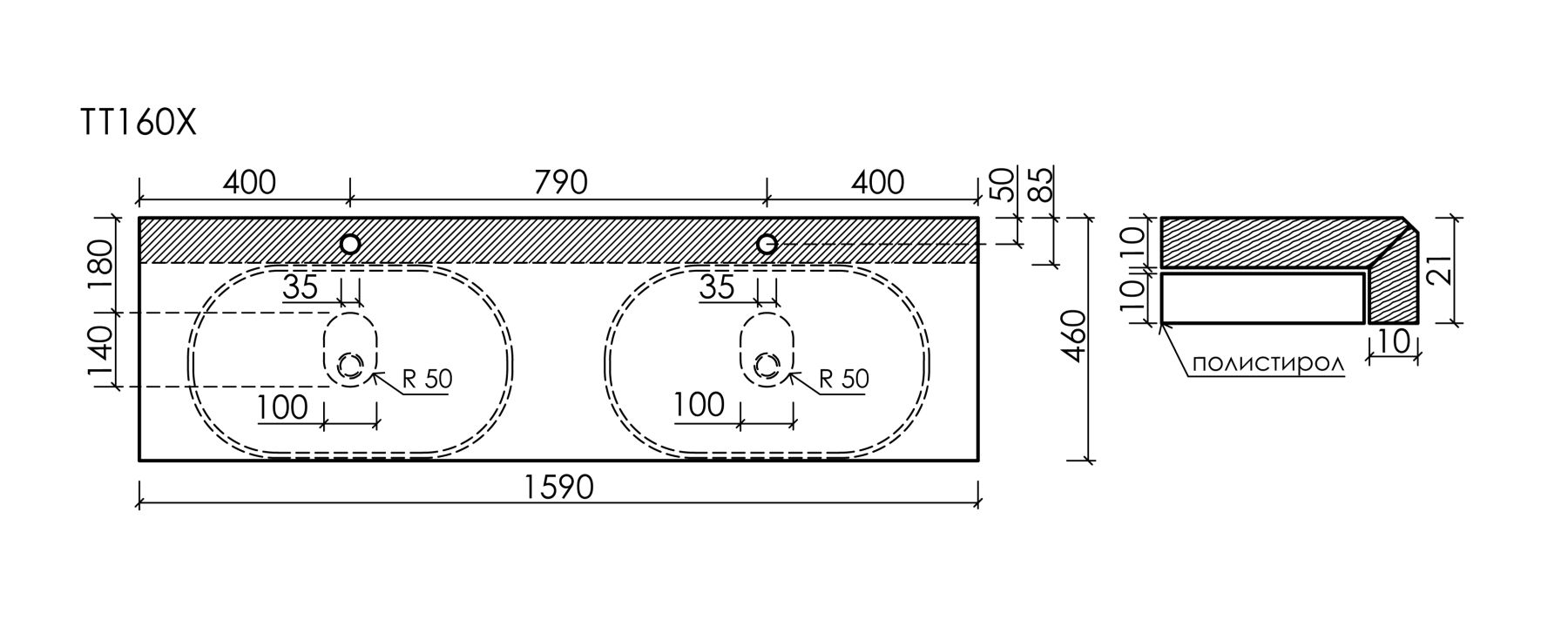 • Столешница выполнена из натурального керамогранита по двухслойной технологии.