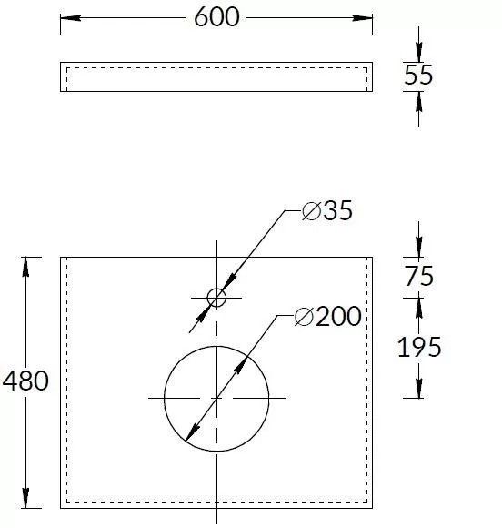 Столешница из керамического гранита «Про Чементо» с отверстием под смеситель. Предназначена для использования раковинами CANALETTO, а также с тумбами MODULA. Отверстия для раковины и смесителя располагаются в центре. Смеситель устанавливается в столешницу (используйте смесители с подходящим типом установки).