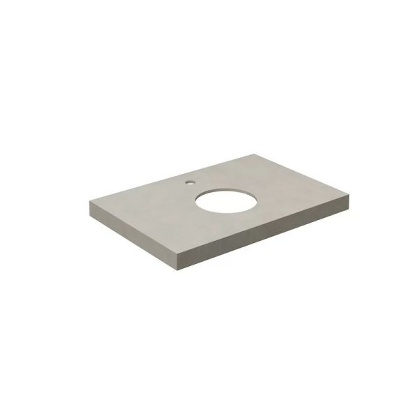 Столешница из керамического гранита «Про Чементо» с отверстием под смеситель. Предназначена для использования раковинами CANALETTO, а также с тумбами MODULA. Отверстия для раковины и смесителя располагаются в центре. Смеситель устанавливается в столешницу (используйте смесители с подходящим типом установки).