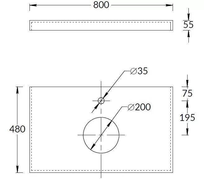 Столешница из керамического гранита «Про Чементо» с отверстием под смеситель. Предназначена для использования раковинами CANALETTO, а также с тумбами MODULA. Отверстия для раковины и смесителя располагаются в центре. Смеситель устанавливается в столешницу (используйте смесители с подходящим типом установки).