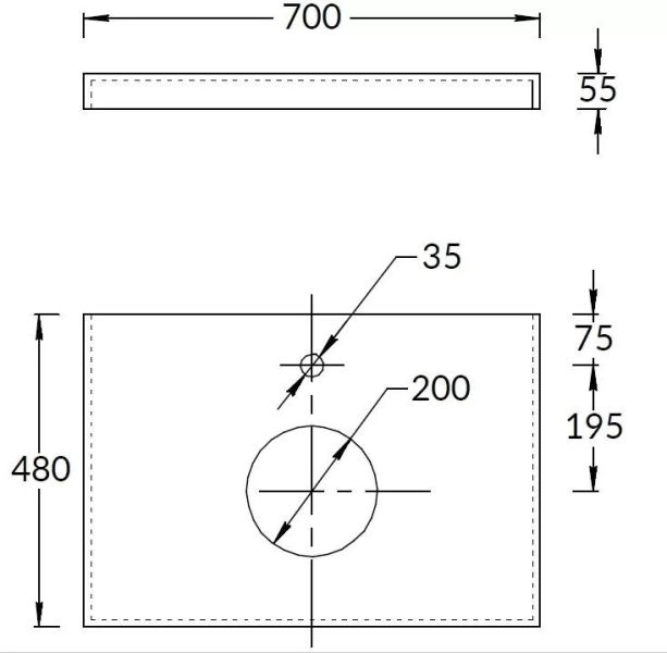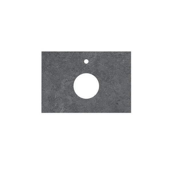 Столешница из керамического гранита с эффектом камня Роверелла с отверстием под смеситель. Отверстия для раковины и смесителя располагаются в центре. Смеситель устанавливается в столешницу (используйте смесители с подходящим типом установки)