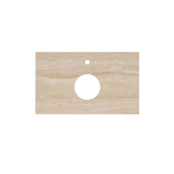 Столешница предназначена для накладного монтажа и оснащена готовыми отверстиями под смеситель и раковину, что упрощает установку и integration в существующую сантехническую систему. Натуральный бежевый цвет гармонично сочетается с классическими и современными интерьерами, добавляя им теплоты и уюта. Небольшой вес (9,1 кг) облегчает транспортировку и монтаж.