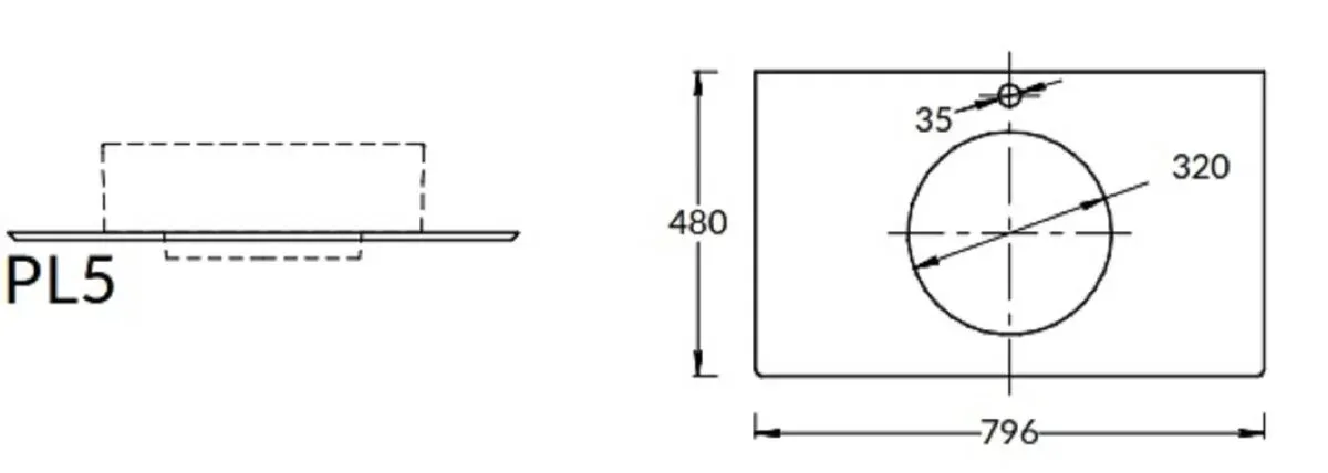Столешница из керамогранита для накладных раковин, Монте Тиберио 80 см, белый натуральный