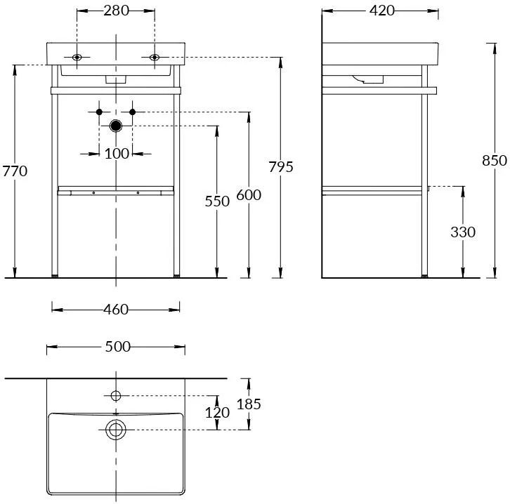 Стильная металлическая структура, окрашенная в чёрный матовый цвет, — интересная альтернатива привычной тумбе. Предназначена для установки раковины PRO шириной 50 см. Белая матовая полка из окрашенного ЛДСП заказывается отдельно.