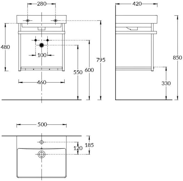 Стильная металлическая структура, окрашенная в чёрный матовый цвет, — интересная альтернатива привычной тумбе. Предназначена для установки раковины PRO шириной 50 см. Белая матовая полка из окрашенного ЛДСП заказывается отдельно.