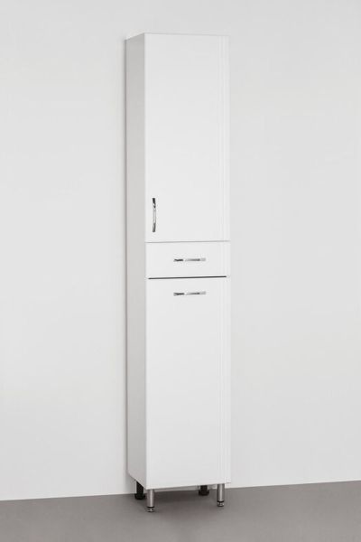Колонна напольная бренда "Style Line" Эко Стандарт 36 с бельевой корзиной. Фурнитура - хром, эксклюзивный декор "Луино" - ламинация внутренней стороны изделия. Направляющие полного выдвижения Hettich; сборка изделия с помощью эксцентриковых стяжек Hafele; все материалы полностью влагостойкие