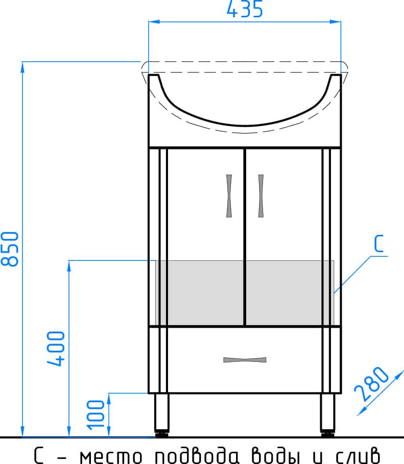 Тумба под раковину Style Line Эко Стандарт 9/1Б ЛС-00000096