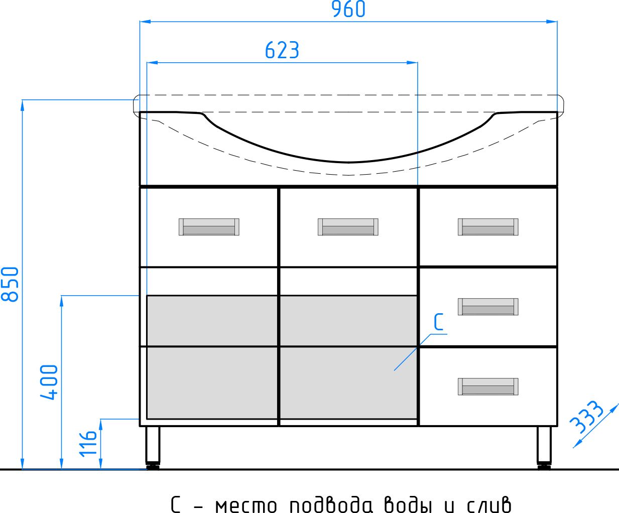 Тумба напольная "Ирис" с прямоугольными фасадами современного дизайна, декорированная врезными ручками хром/матовый хром. Направляющие полного выдвижения Hettich, обеспечивают плавность и бесшумность хода, высокую надежность и прочность. Данная тумба предусматривает открытую подводку воды