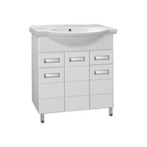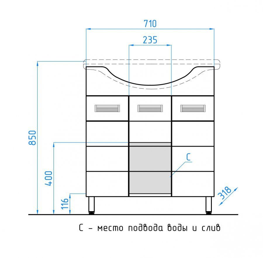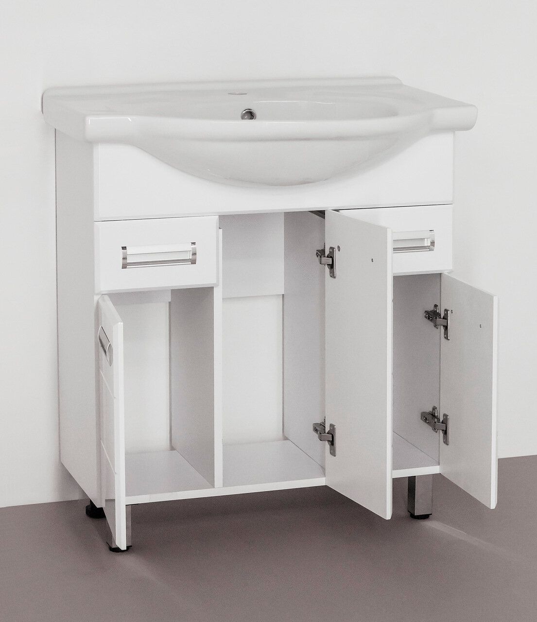 Тумба напольная "Ирис" с прямоугольными фасадами современного дизайна, декорированная врезными ручками хром/матовый хром. Направляющие полного выдвижения Hettich, обеспечивают плавность и бесшумность хода, высокую надежность и прочность. Данная тумба предусматривает открытую подводку воды