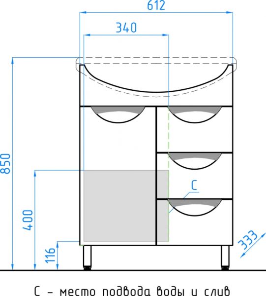 Тумба напольная бренда "Style Line" коллекции "Жасмин" со стильными врезными ручками. Фурнитура - хром, направляющие полного выдвижения Hettich; сборка изделия с помощью эксцентриковых стяжек Hafele; все материалы полностью влагостойкие. Данная тумба предусматривает открытую подводку воды