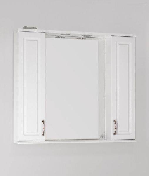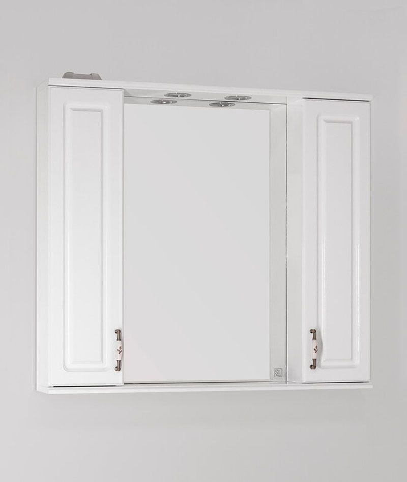Зеркальный шкаф Style Lineколлекции "Олеандр-2" с подсветкой классического дизайна, декорированный ручками с керамическими вставками "под бронзу" с изящным рисунком. Стеклянные полки с еврокромкой и прозрачными полкодержателями Hefele; лазерная гравировка фирменного логотипа; встроенные светильники в шкафах комплектуются выключателем, розеткой и трансформатором. Высокоточная обработка кромки фацетом 10 мм придает изделию законченный вид и защищает от порезов