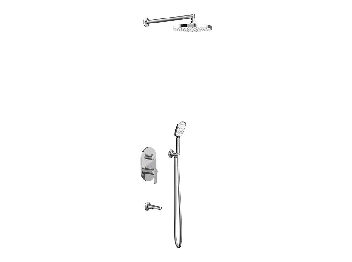 Душевой набор скрытого монтажа AMOS.Комплектация:Верхний душ Кронштейн для верхнего душа Ручная лейка Шланг душевой (шланговое подсоединение)Настенный держатель для ручной лейкиПанель управленияНастенный излив для ванной Скрытая часть для монтажа смесителя (Внутренний комплект ibox)Инструкция по монтажу