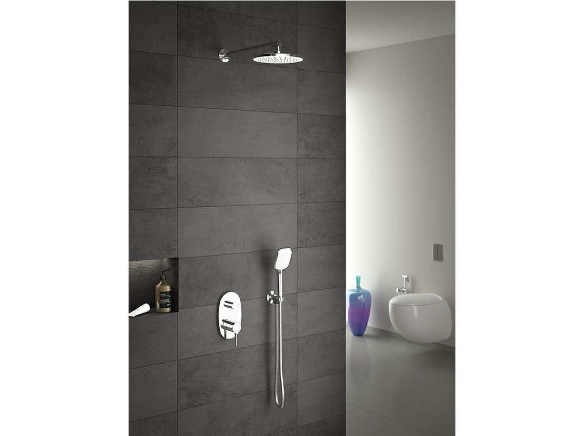 Душевой набор скрытого монтажа SARDES. Комплектация: Верхний душ Кронштейн для верхнего душа Ручная лейка Шланг душевой (шланговое подсоединение) Настенный держатель для ручной лейки Панель управления Скрытая часть для монтажа смесителя (Внутренний комплект ibox) Инструкция по монтажу.