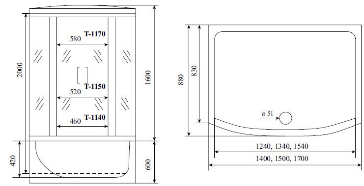 Timo Standart T-1140 душевая кабина (140*88*220)