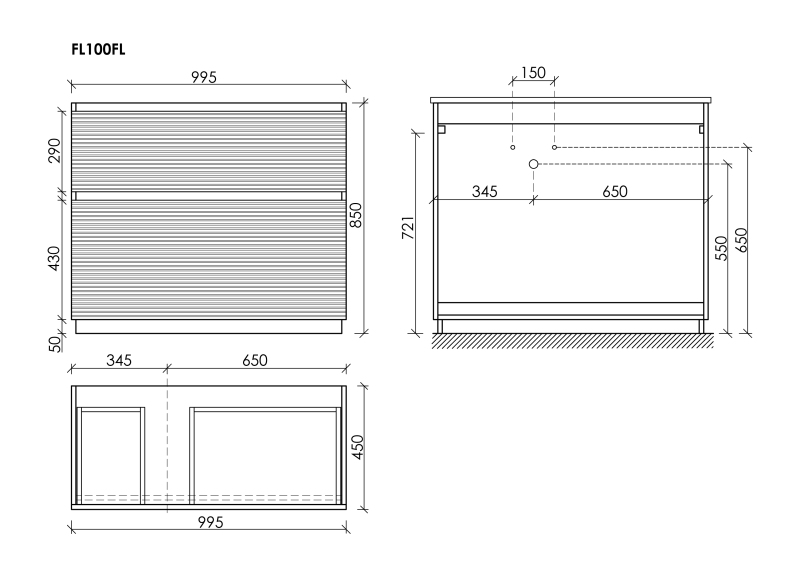 - Размер 995х445х850, левая