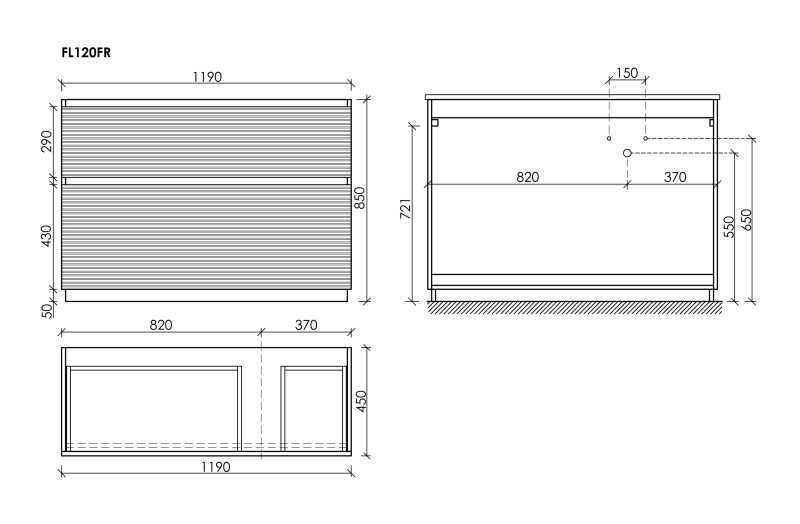 • Тумба напольная с двумя выдвижными ящиками с доводчиками скрытого монтажа