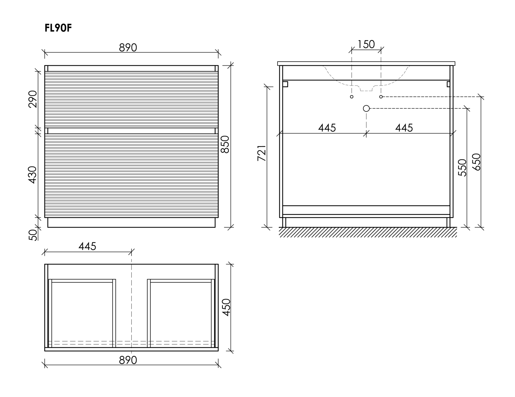 • Тумба напольная с двумя выдвижными ящиками с доводчиками скрытого монтажа
