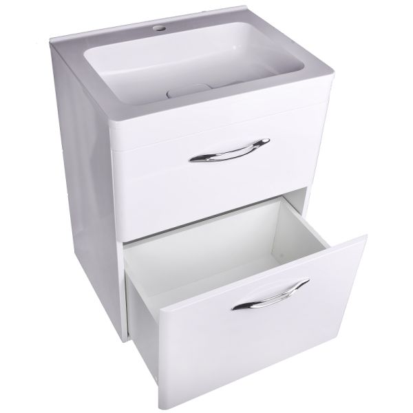 Тумба напольная под раковину Style Line "Каре 60" СС-00002265 (2 ящ.) Люкс белая, PLUS