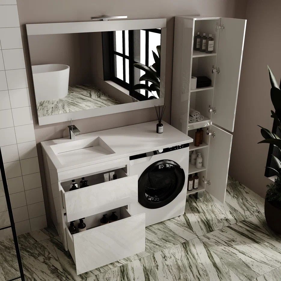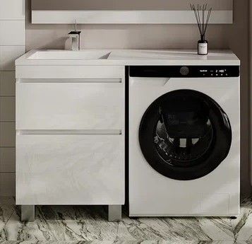 Тумба напольная Style Line Даллас Леон 120 Люкс Plus СС-00002438 под раковину для стиральной машины белый купить