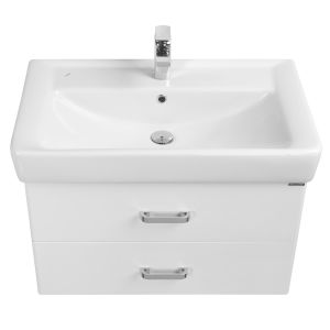 Стильная лаконичная модель, созданная для небольших ванных комнат. В тумбе имеются два ящика, изготовленные из декоративной влагостойкой ДСП. Верхний ящик имеет специальную организацию пространства, позволяющую хранить мелкие предметы, а нижний широкий и вместительный для более крупных предметов.