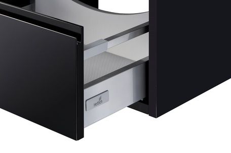 - Оба металлических ящика в тумбе снабжены направляющими полного выдвижения с системой демпфирования - мягкого закрывания австрийского производителя GRASS