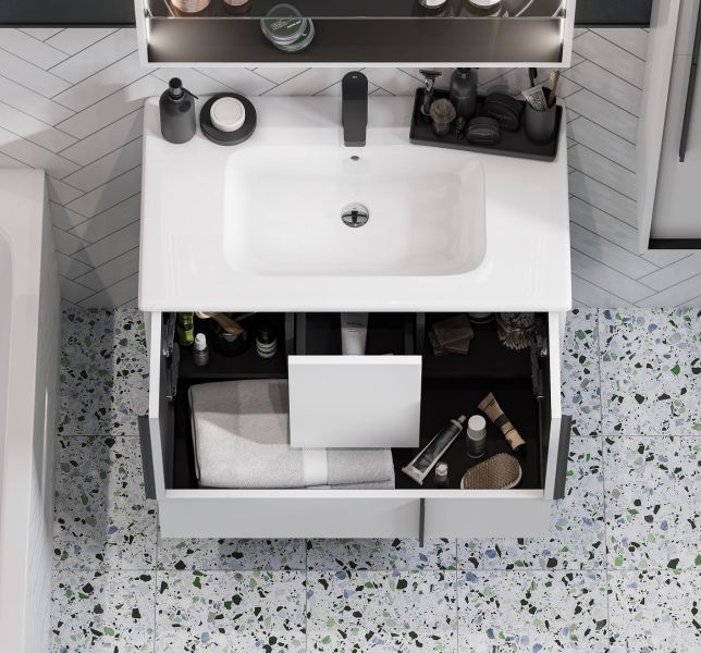 Тумба для комплекта Акватон Ривьера 60 роскошно подойдет как для просторной ванной комнаты, так и для небольшого помещения. Подвесной способ установки дает возможность не только визуально увеличить пространство, но и обеспечивает быстрый и удобный доступ для уборки.В производстве используют только качественные влагостойкие материалы (МДФ), в составе которых полностью отсутствуют опасные вещества. Серия Ривьера отличается превосходным дизайном с соблюдением всех важных элементов современного стиля. Основным цветом, в котором выполнена тумба под раковину Акватон Ривьера является белый, гармонирующий с большинством интерьерных решений. Тумба под раковину предусматривает удобную и вместительную систему хранения, состоящую из дверей, ящиков. Важные размеры товара: ширина 78.6 см, глубина 45 см, высота 55 см.Страной бренда Акватон является Россия, все товары производятся с выполнением соответствующих стандартов качества, что позволяет быть полностью уверенными в долговечности и надежности. Тумба для комплекта Акватон Ривьера 60 поможет сделать уютным любой интерьер и создать идеальную ванную комнату.