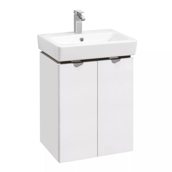 Вместительная и при этом компактная тумба Скай PRO 55 от AQUATON в современном стиле гармонично сочетает ультрабелые глянцевые фасады с декоративной вставкой в цвете серый кашемир - элегантное и практичное решение для удобной организации пространства в небольших ванных комнатах. Корпус модели из влагостойкой ЛДСП и фасады из высококачественной МДФ покрыты белой полиэфирной краской ультрафиолетового отверждения, которая гарантирует безупречный внешний вид, а также прочность и долговечность. За распашными фасадами-створками находится регулируемая по высоте полка, таким образом внутри достаточно места, чтобы разместить всё необходимое. Петли с доводчиком обеспечивают плавное и бесшумное закрывание. Белоснежные глянцевые фасады подчеркивают эргономичные хромированные ручки. Идеальный комплект с тумбой составит раковина Нео от бренда Santek.