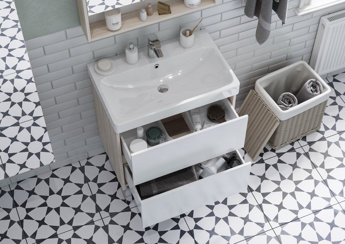 Тумба под раковину Акватон Сканди 70см белый/дуб верона 1A251801SDB20