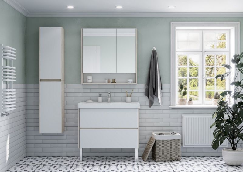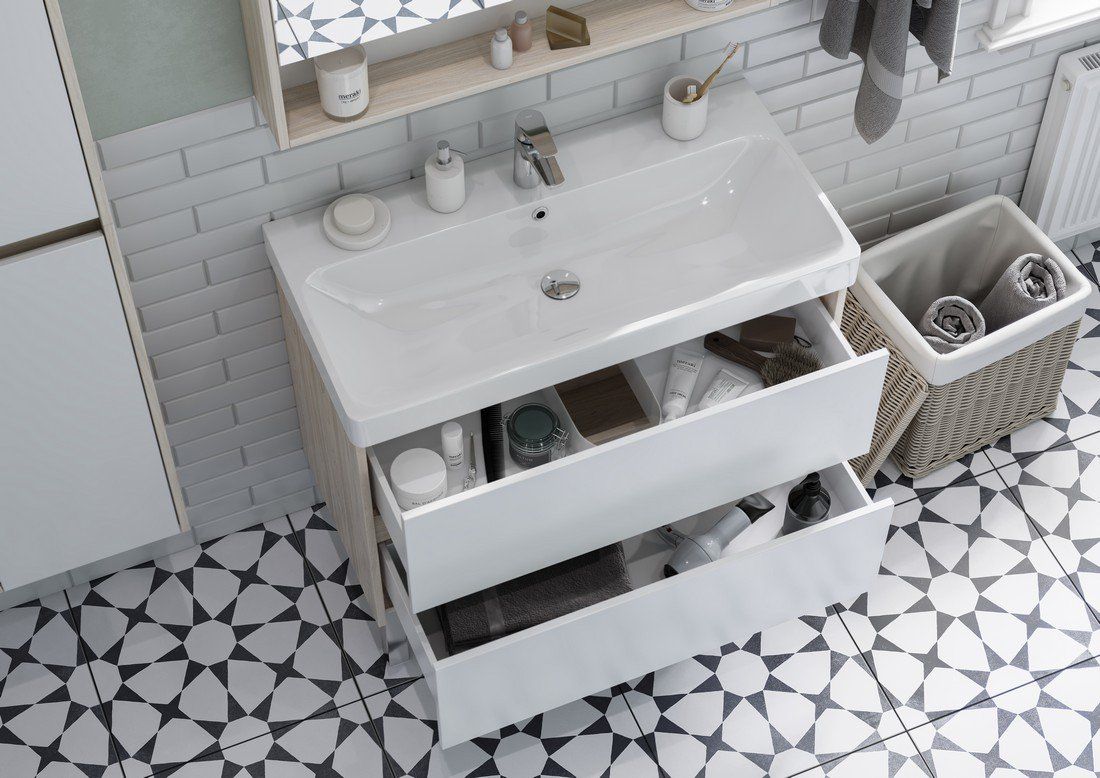 Тумба под раковину Акватон Сканди 90см белый/дуб верона 1A251901SDB20