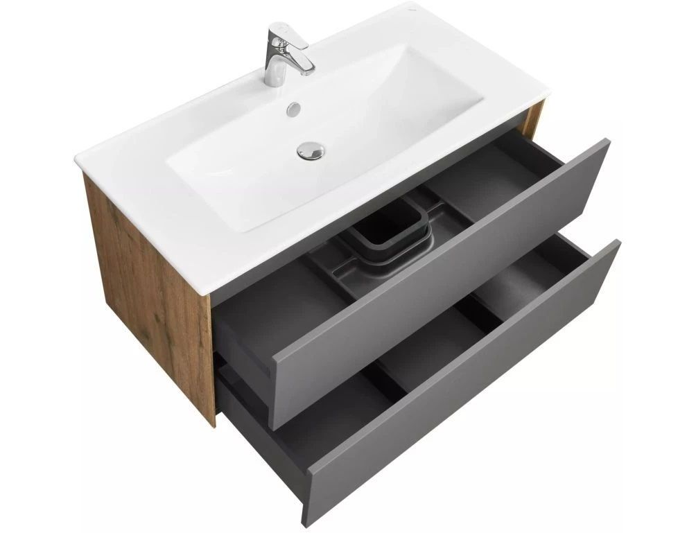 Тумба под раковину Акватон Сохо 100см дуб веллингтон/графит 1A258201AJA00