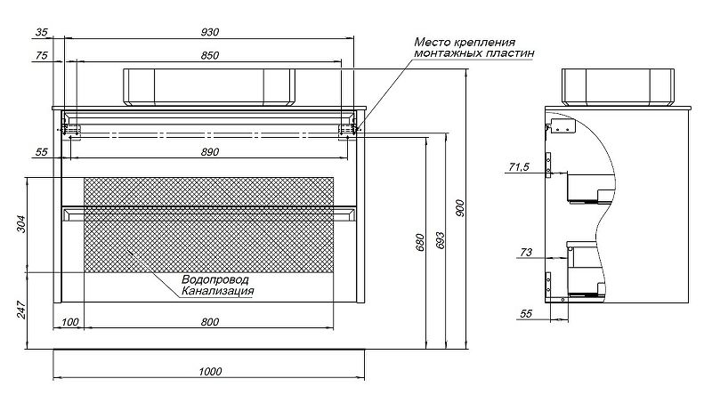 Материал корпуса: влагостойкий ЛДСП.