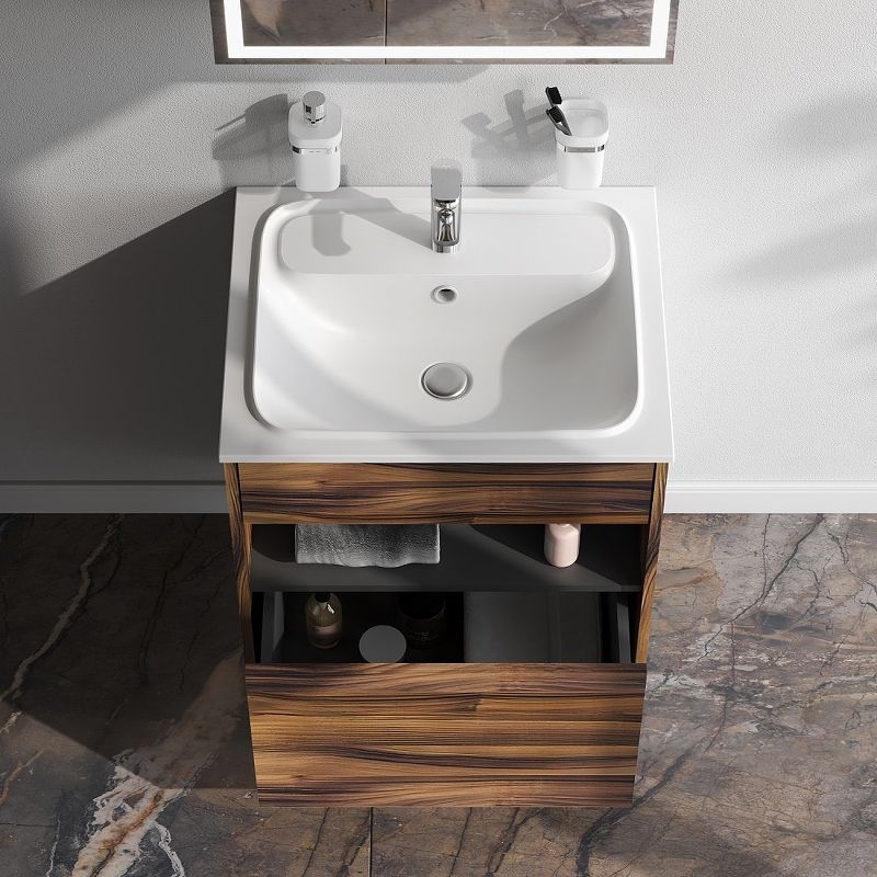 Коллекция мебели Func отличается своей функциональностью, вариативностью и мобильностью. Наши инженеры продумали и учли каждую деталь, чтобы сделать взаимодействие с продуктами максимально простым и комфортным для всех членов семьи. Удобный выдвижной ящик и вместительная открытая ниша позволяют хранить все необходимые средства под рукой. Невероятно мягкое открытие и закрытие благодаря направляющим скрытого монтажа с системой soft close. Универсальный монтаж подвесной и напольный (комплект ножек приобретается отдельно).
