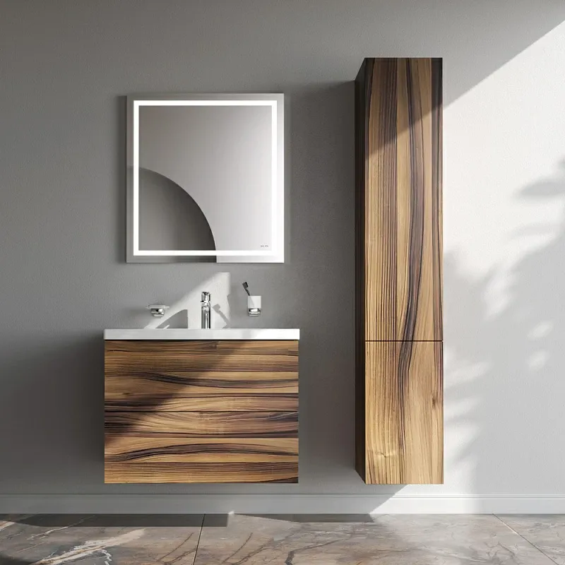 подвесная тумба помогает сэкономить место в ванной комнате, визуально увеличивая пространство;