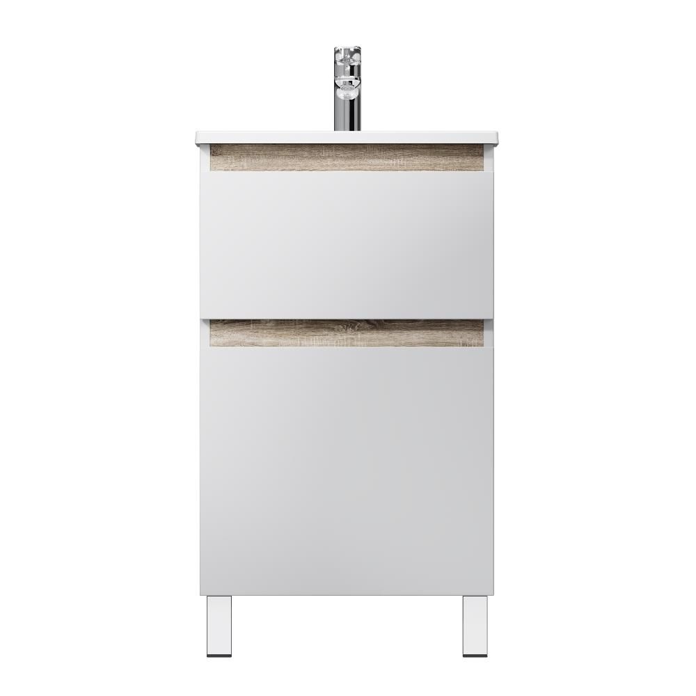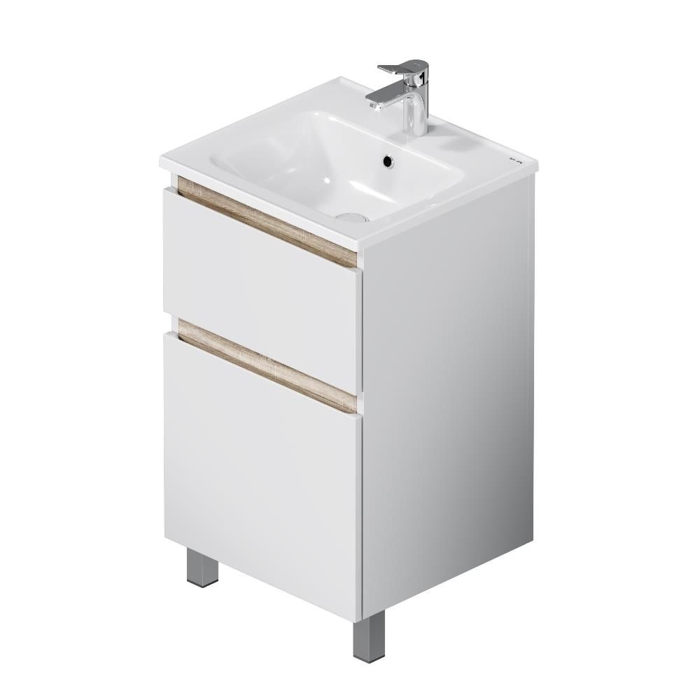 Напольная тумба бренда AM.PM коллекции X-Joy отличается эстетичным сочетанием цветов и фактур от дизайн-агентства Danelon Meroni: белые глянцевые фасады дополнены отделкой под светлое дерево. Функциональный органайзер в первом ящике позволит хранить необходимые косметические средства под рукой и в полном порядке. Внутреннее покрытие каждого ящика выполнено в современном цвете "антрацит" и имеет противоскользящее покрытие.​ Материал изделия - МДФ, ЛДСП. Размер тумбы (Ш/Г/В): 490x450x850. Цвет тумбы - белый глянец.