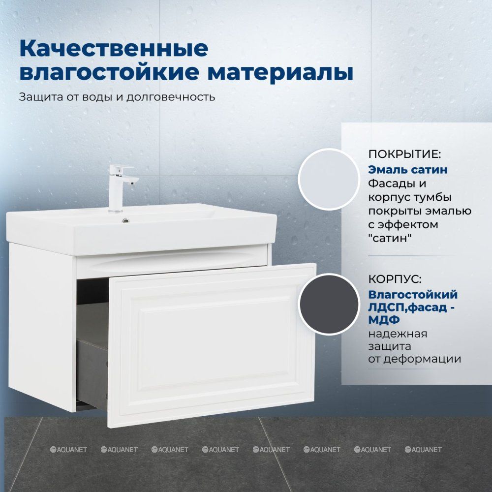 Тумба под раковину Aquanet Агата 345481 75 см белый сатин