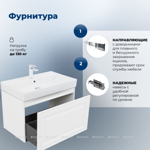 Тумба под раковину Aquanet Агата 75 белый сатин сочетает элегантность неоклассики с практичностью современной мебели. Сдержанная роскошь, легкость линий и универсальный дизайн позволяют ей гармонично вписаться в интерьер ванной комнаты.