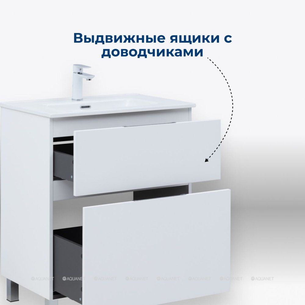 Тумба под раковину Aquanet Алвита New 70 напольная, белый матовый. Внутренние детали изготовлены... Подробнее