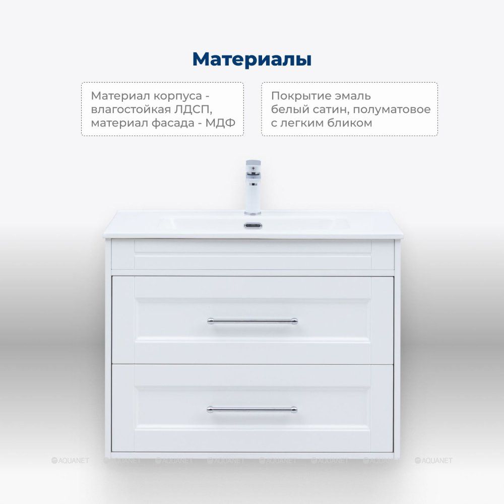 Тумба под раковину Aquanet Бостон new 80 белый сатин Стильная и функциональная тумба под рако... Подробнее