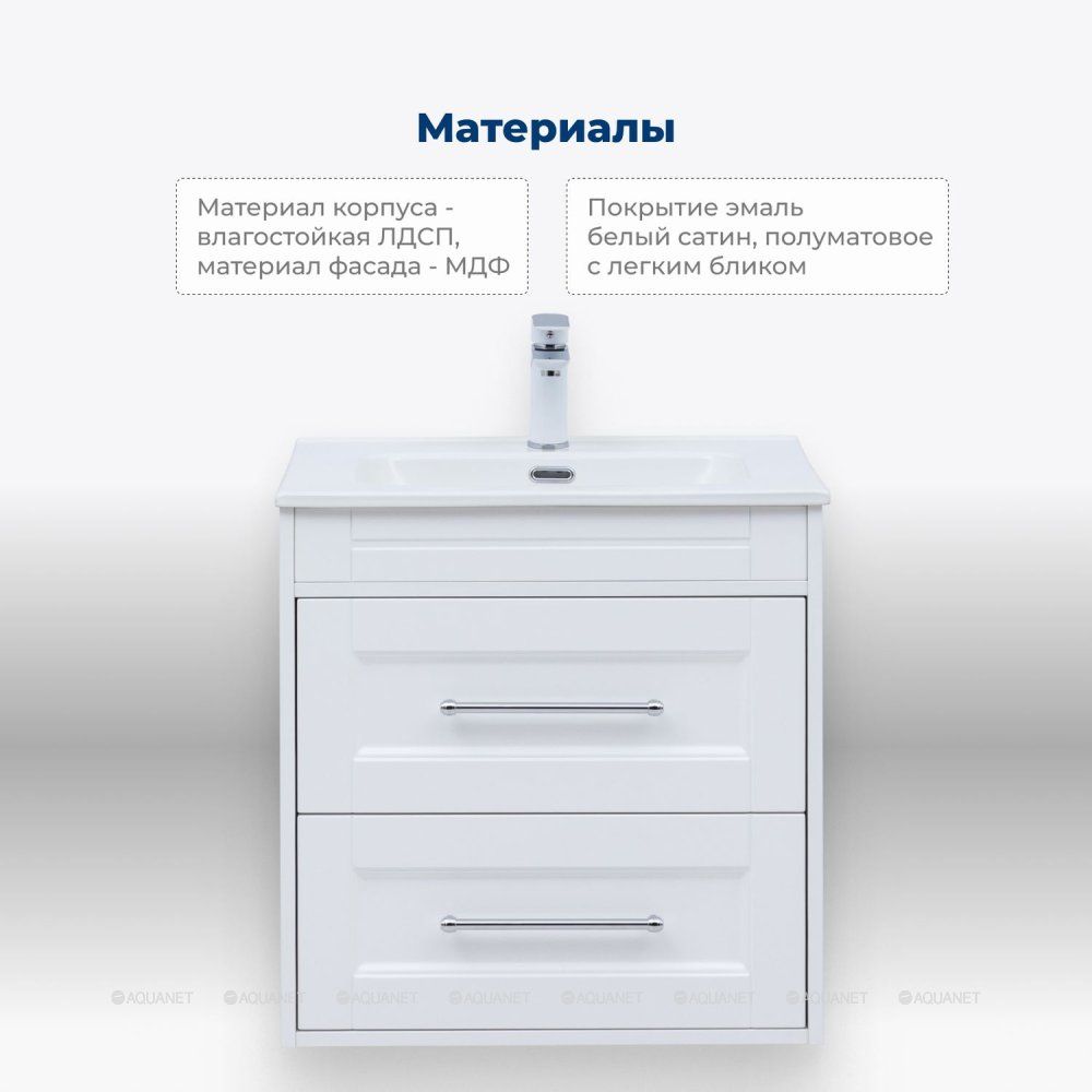 Тумба под раковину Aquanet Бостон new 70 белый сатин